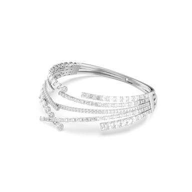 View full detailsWrap your wrist in captivating Swarovski style with this multifaceted bangle. The sleek and modern design is rhodium plated and features a side clo...