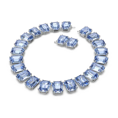 View full detailsDiscover your new wardrobe essential with this elegant necklace, designed with a row of periwinkle blue octagon cut crystals, cradled in rhod...