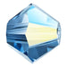 Preciosa crystal beads Bicone in Malibu Blue AB have a smooth thread hole and are multi-faceted to reflect the light, making them perfect to create bespoke designs. Preciosa Bicone Beads have a cylindrical shape and taper towards both ends to create a unique bi-conical shape. The multi-faceted surface of these beads, which narrows towards each end, adds texture, depth, and sparkle to different jewellery and custom-made designs.