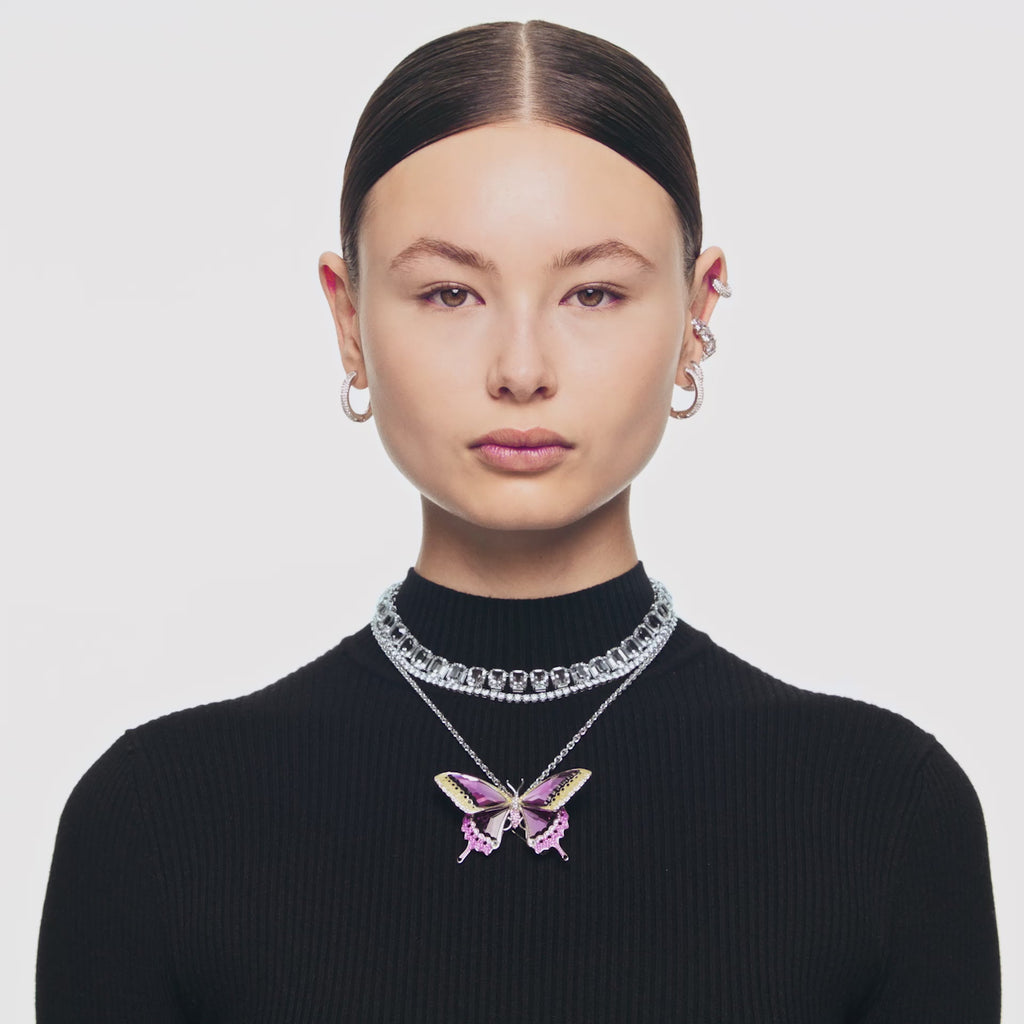Swarovski Dextera Hoop Earrings Small White Rhodium Plated