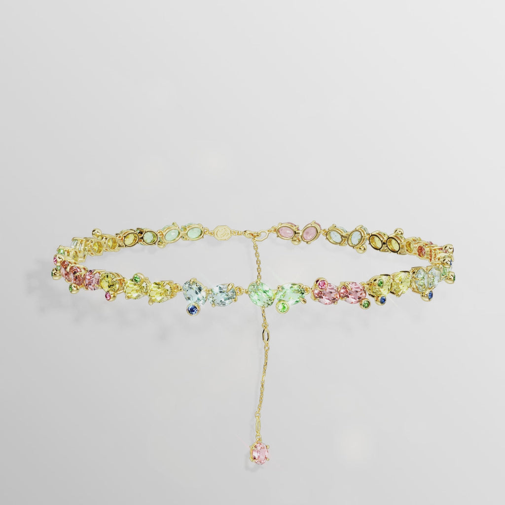 Swarovski Gema Tennis Necklace Mixed Cuts Multicoloured Gold-Tone Plated