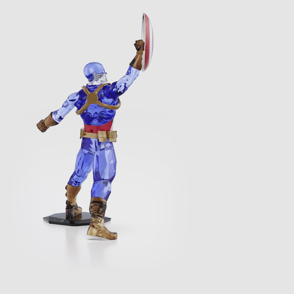 Serving as a shining example of loyalty, strength, and resilience, Captain America is the ultimate Super Hero. To honor the legendary character in crystallized form, this dazzling figurine has been precisely cut with a superb standard of technical expertise. The dynamic design features 382 facets, each revealing Captain America’s most recognizable features, including his indestructible shield, known in the franchise to be made of rare vibranium. Own this collectible hero yourself and you’ll feel instantly empowered. Decoration object. Not a toy. Not suitable for children under 15.