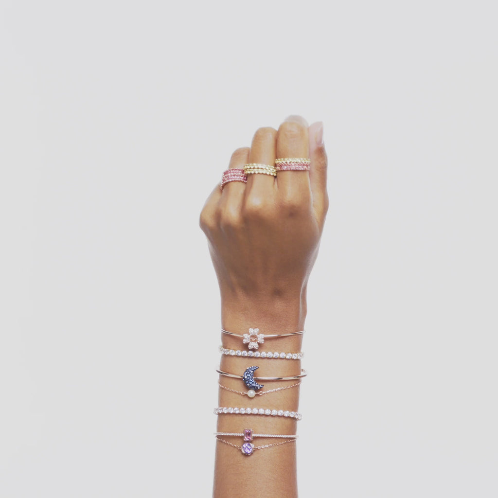 Warm and scintillating at the same time, this gorgeous bracelet is crafted with a complete circle of clear stones on a rose gold-tone plated setting. Each of the crystals wonderfully reflects the light, ensuring your wrist remains eye-catching wherever you go. Enjoy this timeless piece of jewelry for yourself or consider it as a beautiful gift idea.