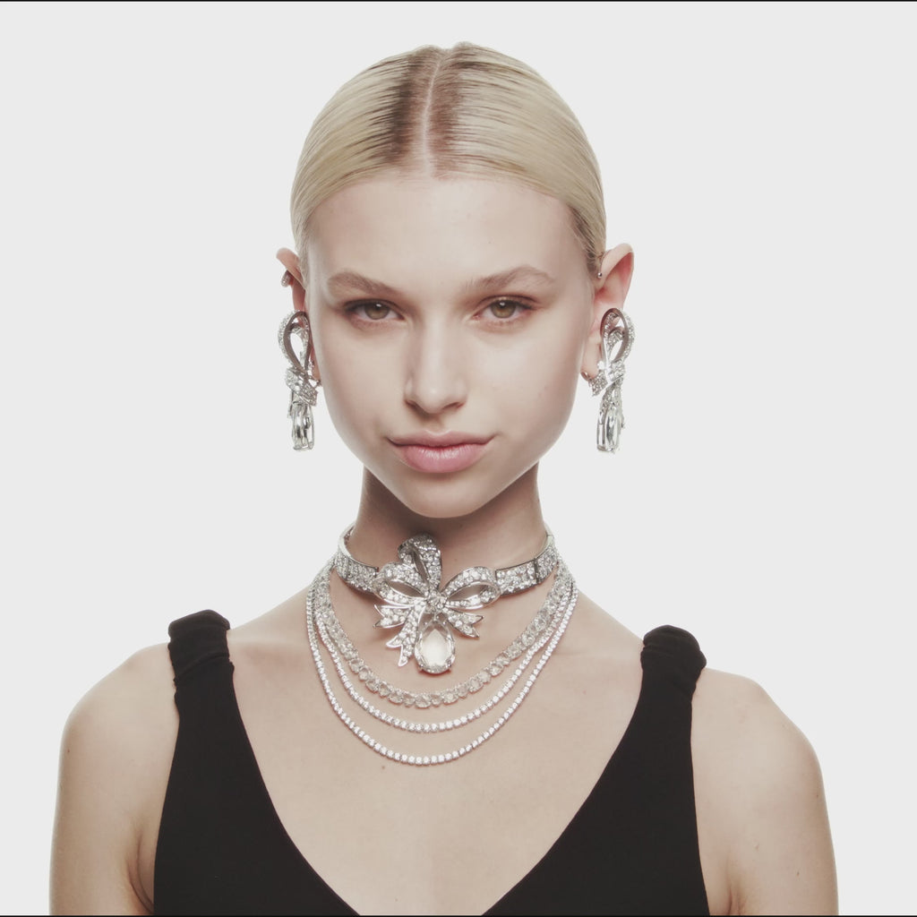 Swarovski Matrix Tennis Necklace Round Cut White Rhodium Plated